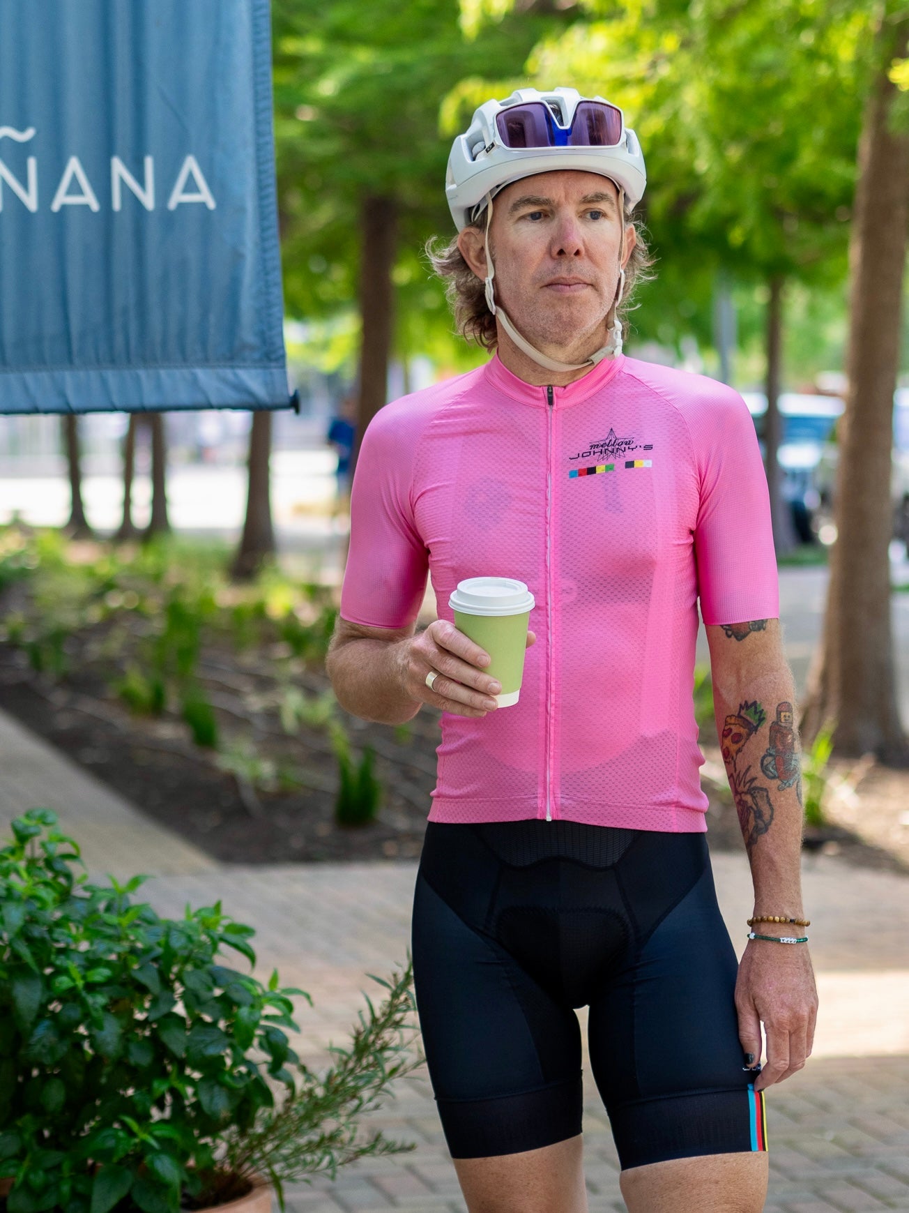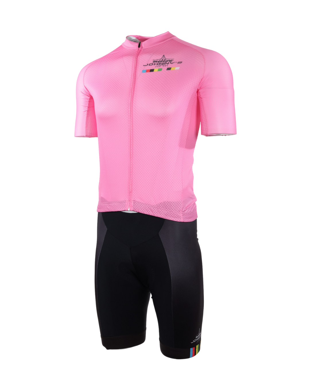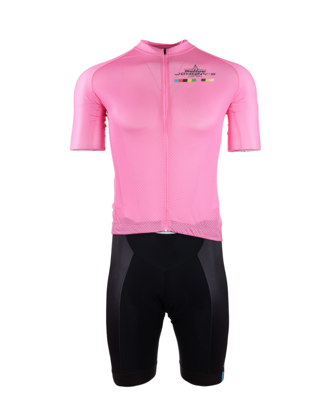 The MJ's Pink Star Jersey is a modern, more minimalist take on the elements of our logo. Featuring the Vero Forma Lyte short sleeve jersey from Giordana, the MJ's Pink Star Jersey is constructed of a super lightweight fabric for enhanced breathability and moisture management. The jersey is an excellent race fit piece. Features include a full, covered zipper, highly reflective trim at the top of the three cargo pockets, aero fit sleeves with laser-cut cuffs, and a hammerhead shoulder fit.