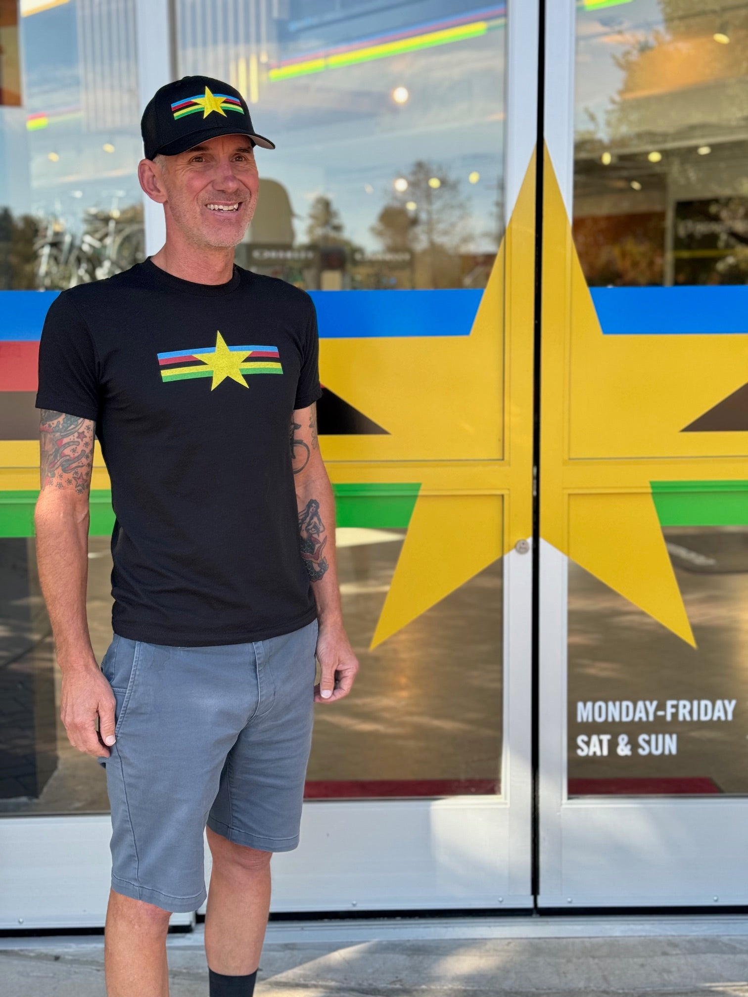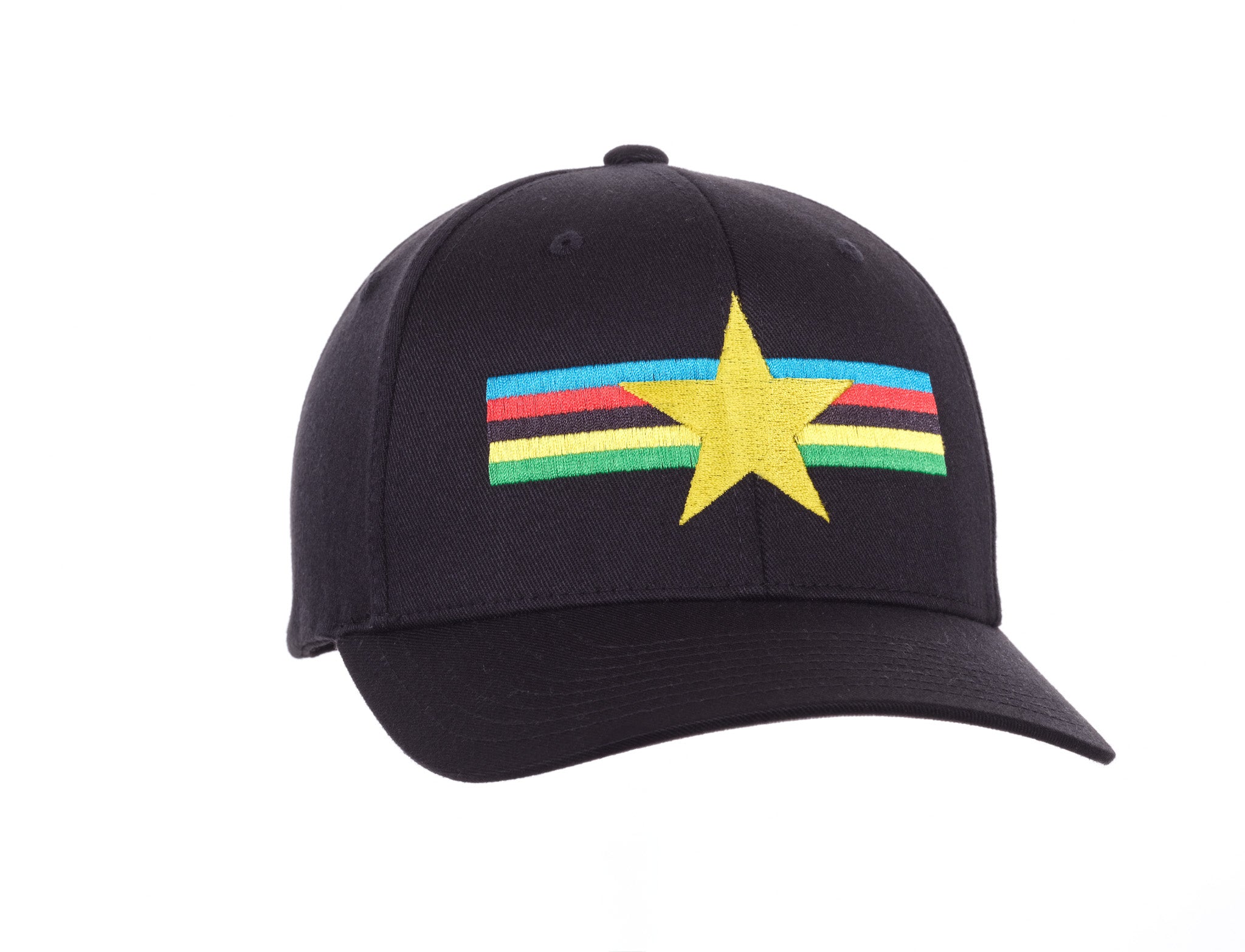 Our new World Headquarters located at 115 Sandra Muraida Way here in ATX has a new look; it's wrapped in the rainbow bands of the World Champ and our door sports our classic yellow lone star. The Muraida Stripe Hat features this new look on a black Yupoong Flexfit hat in either a S/M or L/XL sizing. Made from 63% polyester, 34% cotton, and 4% spandex, the Muraida Stripe hat has 6 panels, a button top, and a classic ball cap style. Limited quantities with no plans for extended production. Get one while you can. And don't forget to grab the MJ's Muraida Stripe t-shirt while you're at it.