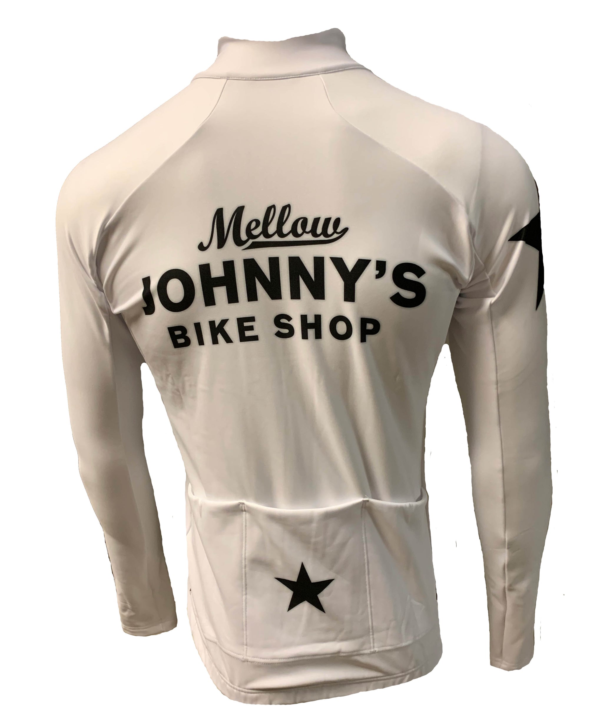 It's our Classic Shop Jersey with long sleeves. Made by Giordana, our Classic Long Sleeve is heavier weight and lightly fleece lined for added warmth and comfort. It also features a taller collar and longer cuffs to help keep the chill at bay. Available in black or white. The cut of the MJ's Classic Long Sleeve Shop Jersey is neutral. Smaller riders or those who prefer the cut of our women's jerseys may consider sizing down.